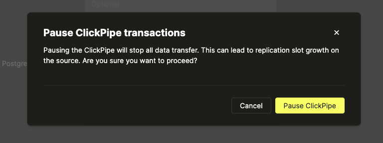 В некоторых сценариях может быть полезно приостановить Postgres ClickPipe. Например, вы можете захотеть провести аналитику по существующим данным в статичном состоянии. Или вы можете выполнять обновления в Postgres. Вот как вы можете приостановить и возобновить Postgres ClickPipe.